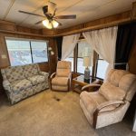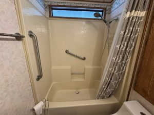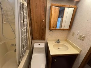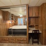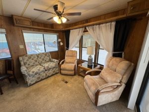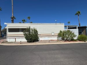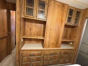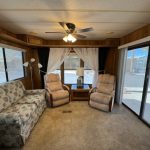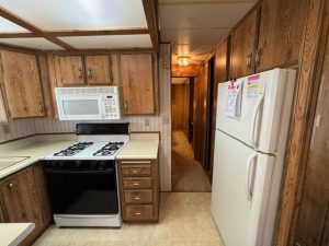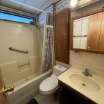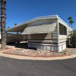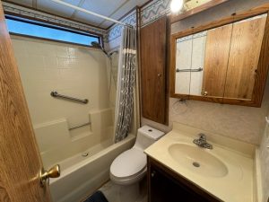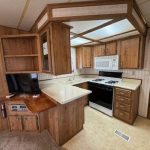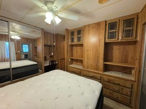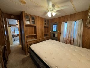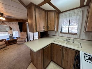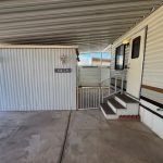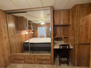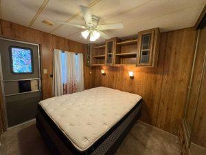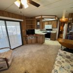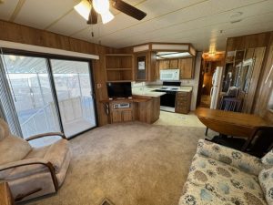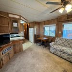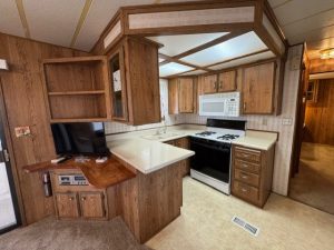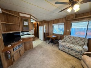 Welcome to the Voyager Resort, a 55+ age qualified active and vibrant resort community where you can find yourself in your dream home. We have an exceptionally clean, well maintained, 1985 Skyline Tahoe Park Model Home available for immediate occupancy.  This home is larger than most park model homes measuring 12′ x 37′. This home features a spacious open floor plan with a U-shaped kitchen, bathroom with a new commode and safety grab bars in the tub/ shower, and a spacious bedroom that offers plenty of built-in drawers, upper cabinets, and a large mirrored closet.