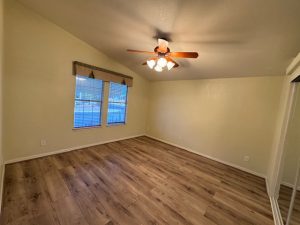 Step inside to find beautiful wood laminate floors throughout the home, Shaker Style cabinetry, and newer Stainless-Steel kitchen appliances. This ideal split bedroom floor plan is ideal for entertaining guests. The expansive primary suite and bath have a 2-sink vanity, large corner garden tub, and a walk-in shower. The home is climate controlled by a powerful, 3-year-old Rheem Gas Pack HVAC system. The home has a whole home water filtration system, and a newer Architectural Shingle Roof. This home comes partially furnished.