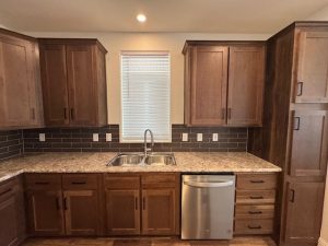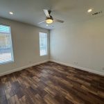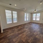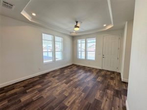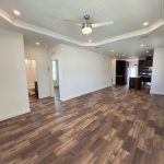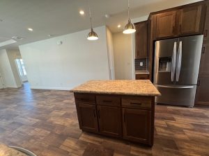 Step inside to find an open-concept floor plan, luxury vinyl flooring, high ceilings, clear site lines from living to kitchen, and a breakfast area. The island kitchen boasts features stainless steel appliances, dual stainless steel sink, and hardwood cabinetry, perfect for both everyday living and entertaining. The spacious primary suite offers a peaceful retreat, complete with a dual sink vanity, walk-in shower with bench seat and floor to ceiling ceramic tile, 2 linen closets, and a large walk-in closet.  Additional bedrooms provide versatility for guests, a home office, or a hobby / craft room. Outside you will enjoy a large backyard, covered patio, and low-maintenance landscaping, ideal for entertaining or unwinding.