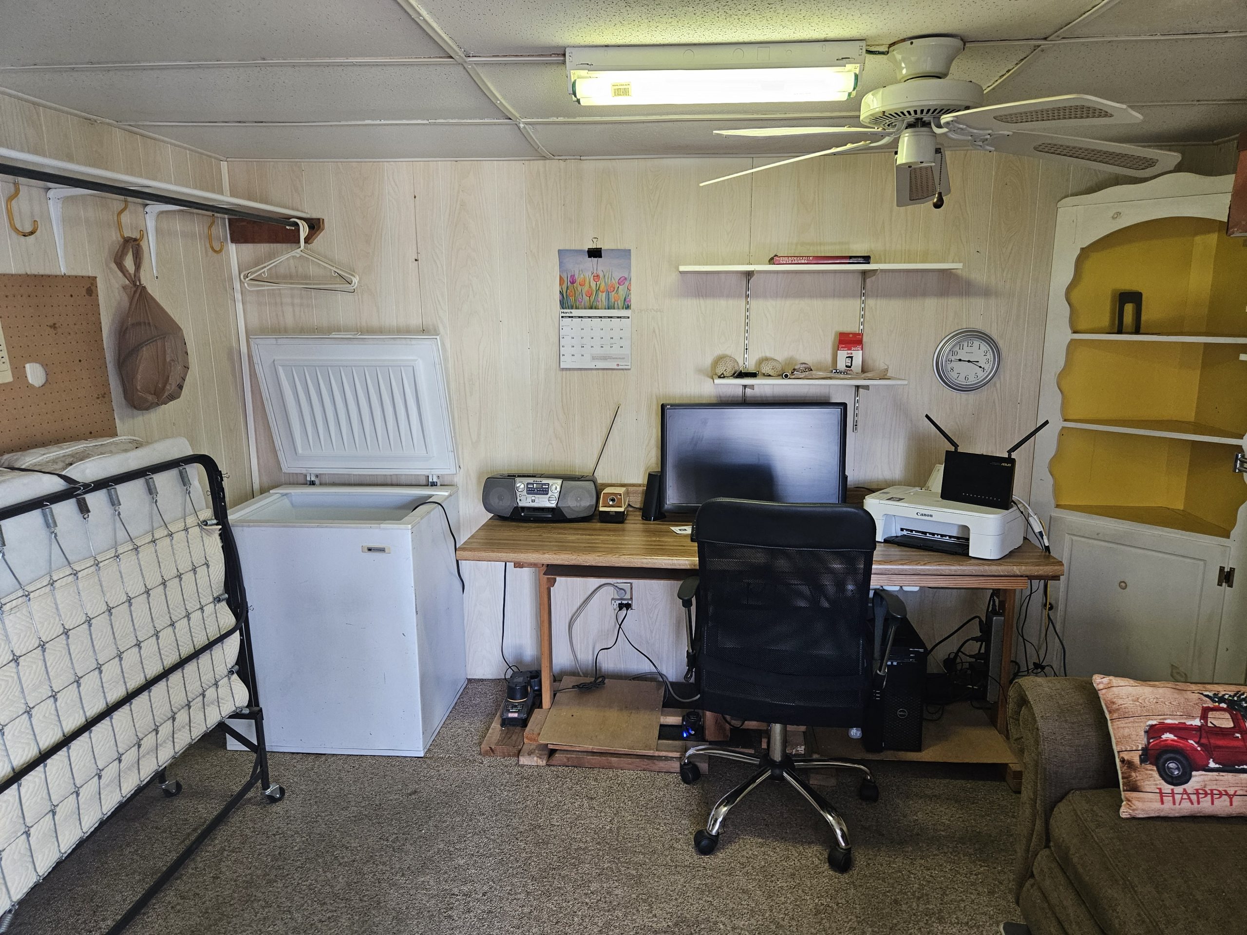 Home Features: Bay windows, wood laminate flooring except the living rm and bedroom, dishwasher, large tub/shower combo, large deck, deck level shed.