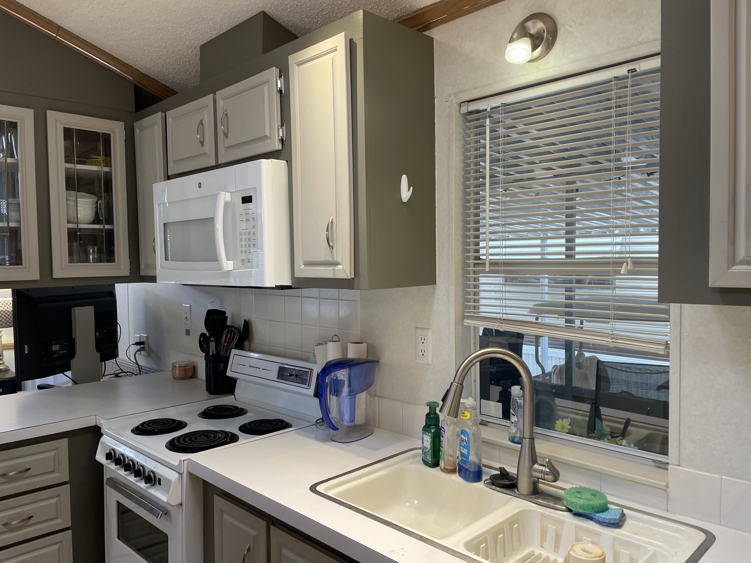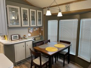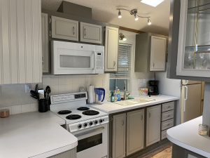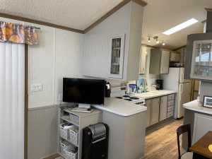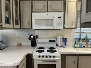 This home features a natural, light-filled, open floor plan with a Galley Kitchen and Bay Window Dining area. The flooring throughout is a lovely, new wood laminate floor. The interior of the home has been recently painted. The large bathroom features a tub/ shower combination. Climate control is from brand new Heat Pump HVAC System – a $11,000 investment. The large storage shed includes a washer and dryer. This home is fully furnished. The 2004 Golf Cart was recently serviced and has new batteries and is included with the home purchase.
