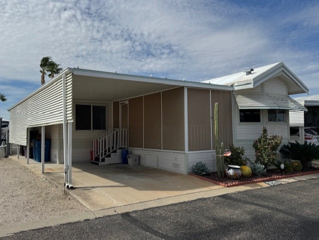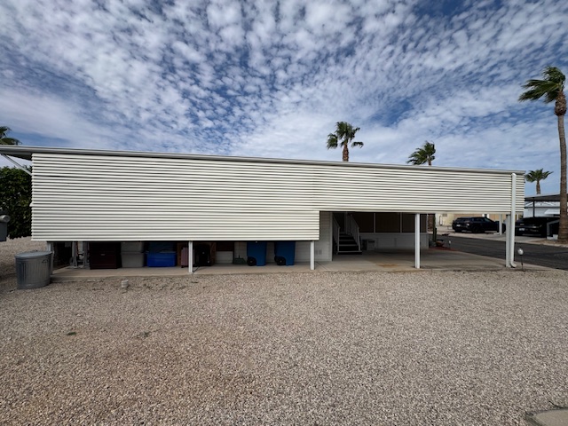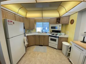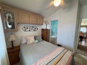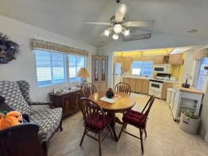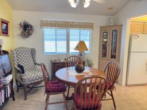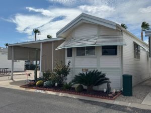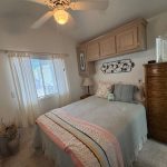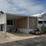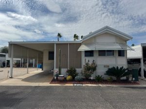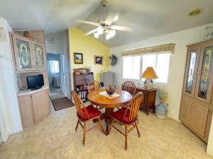 Welcome to the Voyager Resort, a 55+ age qualified active and vibrant resort community where you can find yourself in your dream home. We have a beautiful 1993 Fleetwood Park Model Home available. This home has room to roam! There is a spacious Arizona Room addition with a large utility room. The utility room is multi-use and features a laundry area with full size washer & dryer, office area, and a large walk-in closet. The elegant floor plan features the front of house, open kitchen and dining area. This rare floor plan does not come on the market very often. The kitchen features stylish raised panel cabinets. The large bathroom is a pass-through plan that has access from the primary bedroom and hallway. It features a spacious corner shower / tub combination, corner vanity, and skylight. The bedroom has two large, mirrored closets and has built-in cabinets. The spacious Arizona Room has access to the front deck from a sliding glass door as well as access to the rear covered patio. The large front deck is screened in to enjoy the outdoors in private. The climate is controlled from a newer Goodman central HVAC system. The home will come partially furnished and ready for one’s distinctive touch. Ask a Voyager Associate for a detailed list. There is no sales tax on this home.
